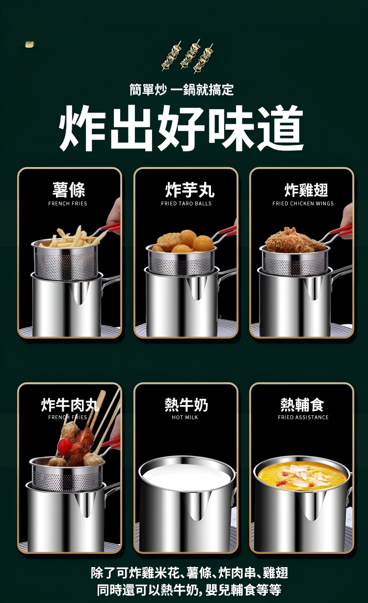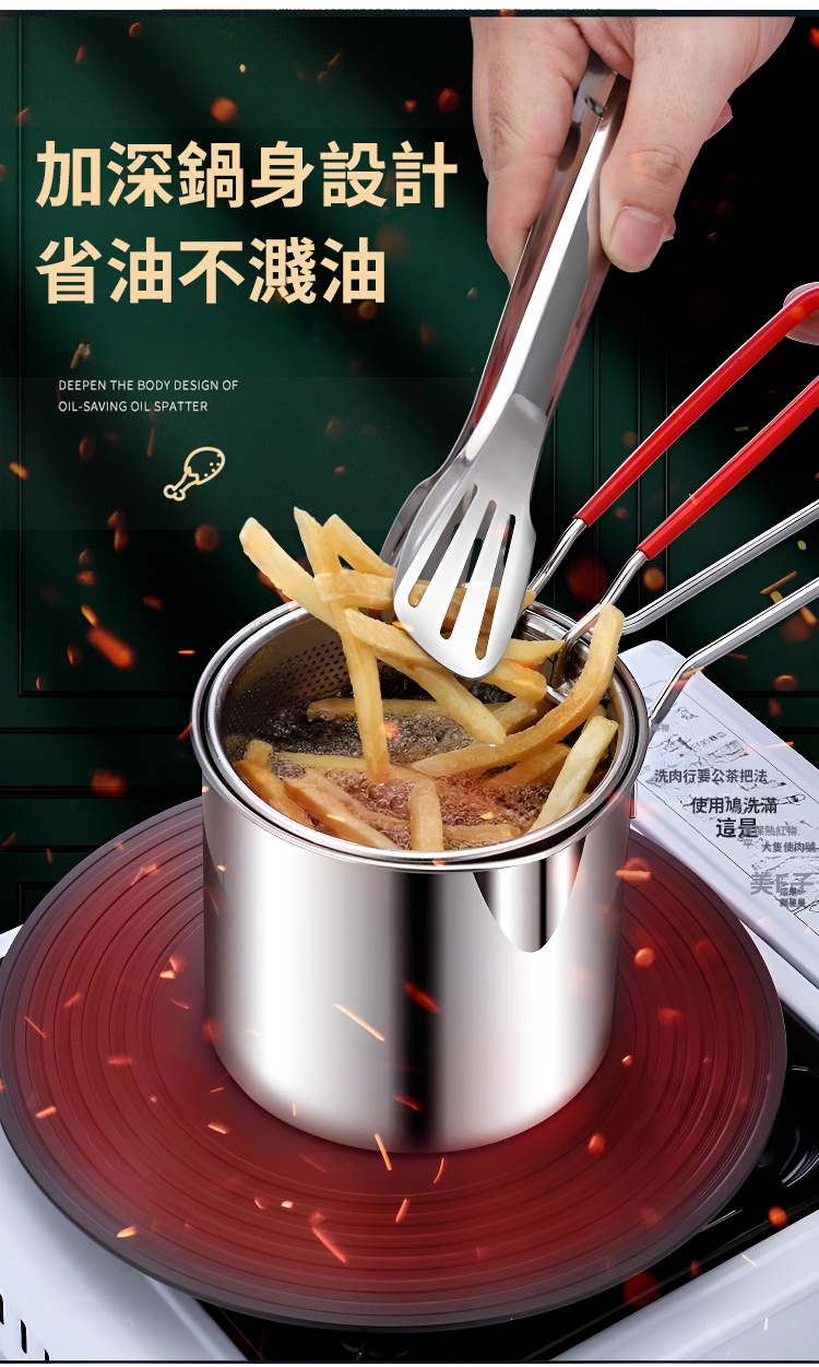 304小炸鍋【濾油籃+夾子+蓋子】