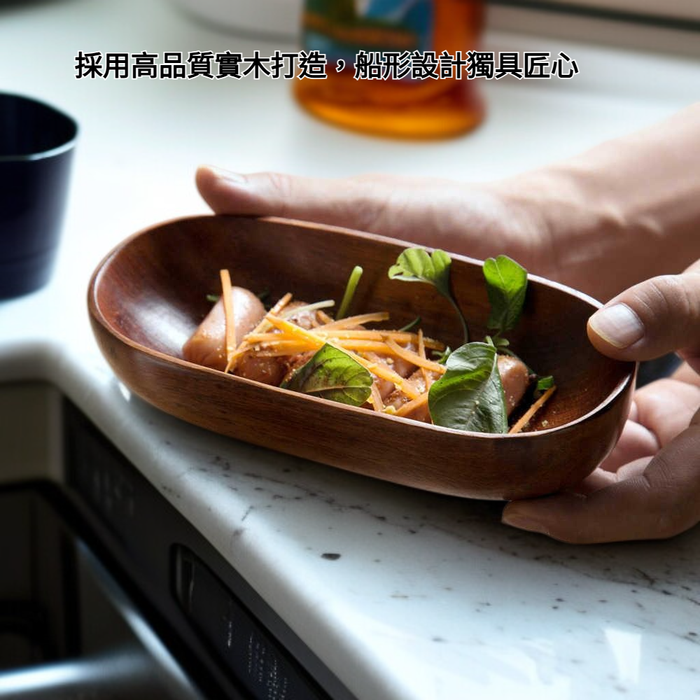 實木船形托盤 家用客廳甜品點心盤 木製酒店餐廳水果盤