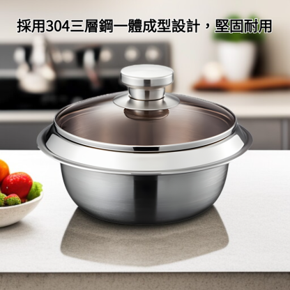 ● 採用304三層鋼一體成型設計,堅固耐用,物理不沾鍋面有效防止食材沾黏,清洗更輕鬆省力。