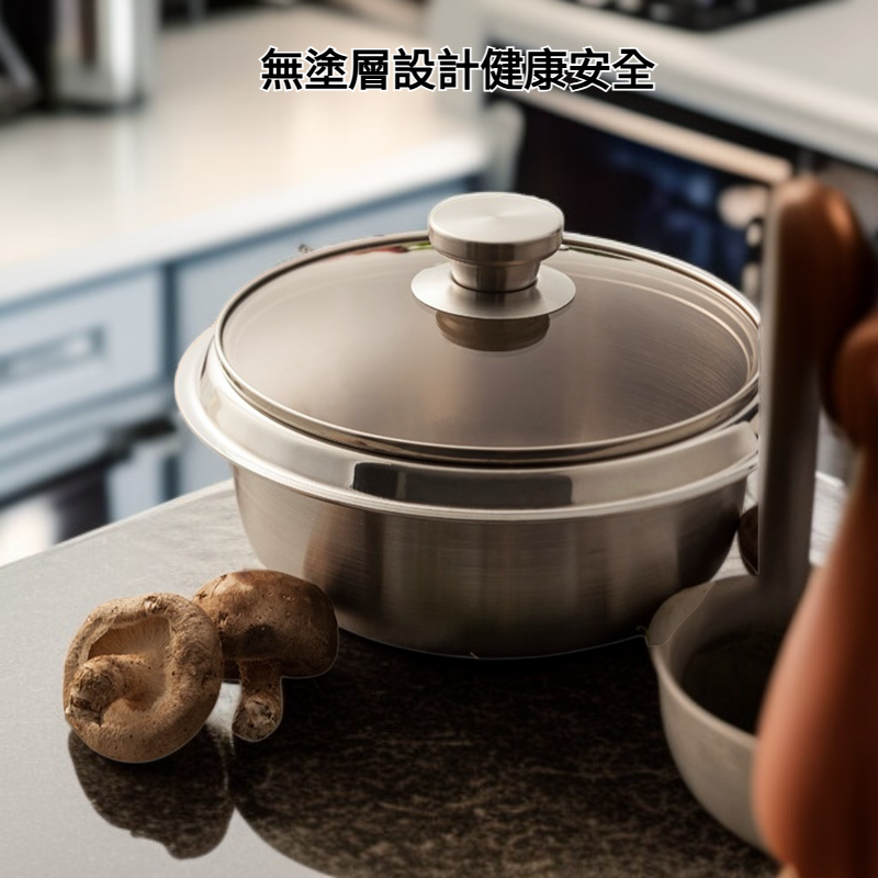 ● 特厚2mm不鏽鋼材質,導熱均勻且保溫效果佳,無論油炸、煮湯皆能輕鬆駕馭,烹調更安心。