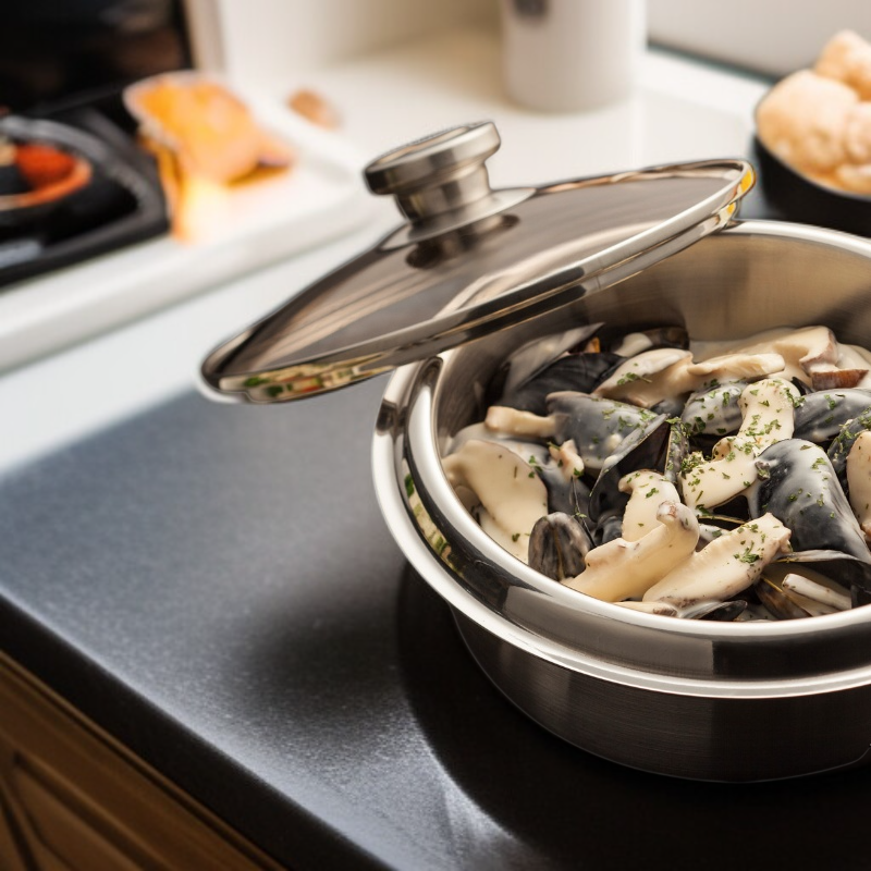 ● 時尚外型搭配人體工學手柄,握感舒適不燙手,提升廚房質感與使用便利性。
